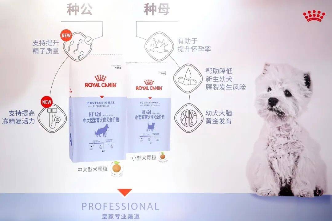 皇家专业渠道于 2015 年成立,一直致力于通过产品加服务助力赋能专业的繁育人。繁育期的犬猫需求与日常不同,公犬、母犬以及母犬不同阶段都有独特的营养需求。皇家焕新上市的繁育成犬(HT42d)粮,通过添加 ω - 3 脂肪酸(DHA)、β 胡萝卜素和叶酸等元素,帮助提升质量,增强母犬自身免疫力,支持幼犬大脑发育。